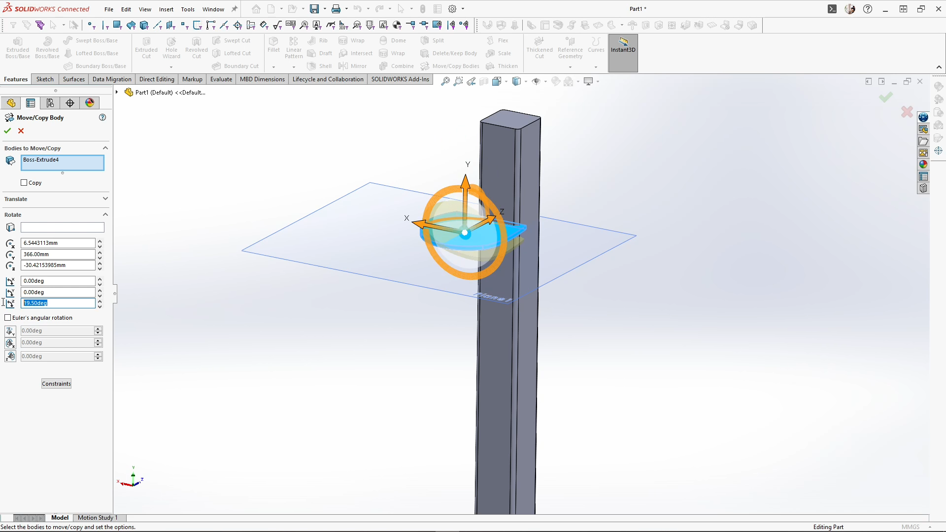 叶子旋转与柔化:打造自然形态● 第一次旋转:使用移动/复制实体功能,选择叶子实体,确保不勾选复制框,只移动现有实体。沿着Z轴旋转该实体18度。 ● 第二次旋转:再次使用移动/复制实体功能,这次以直边为参考,输入35度旋转叶子。注意旋转顺序,否则叶子位置会出错。 ● 柔化叶子:用圆角柔化叶子外观,在每个尖角添加圆角,且在草图之外添加圆角,这样更便于后期编辑。 |