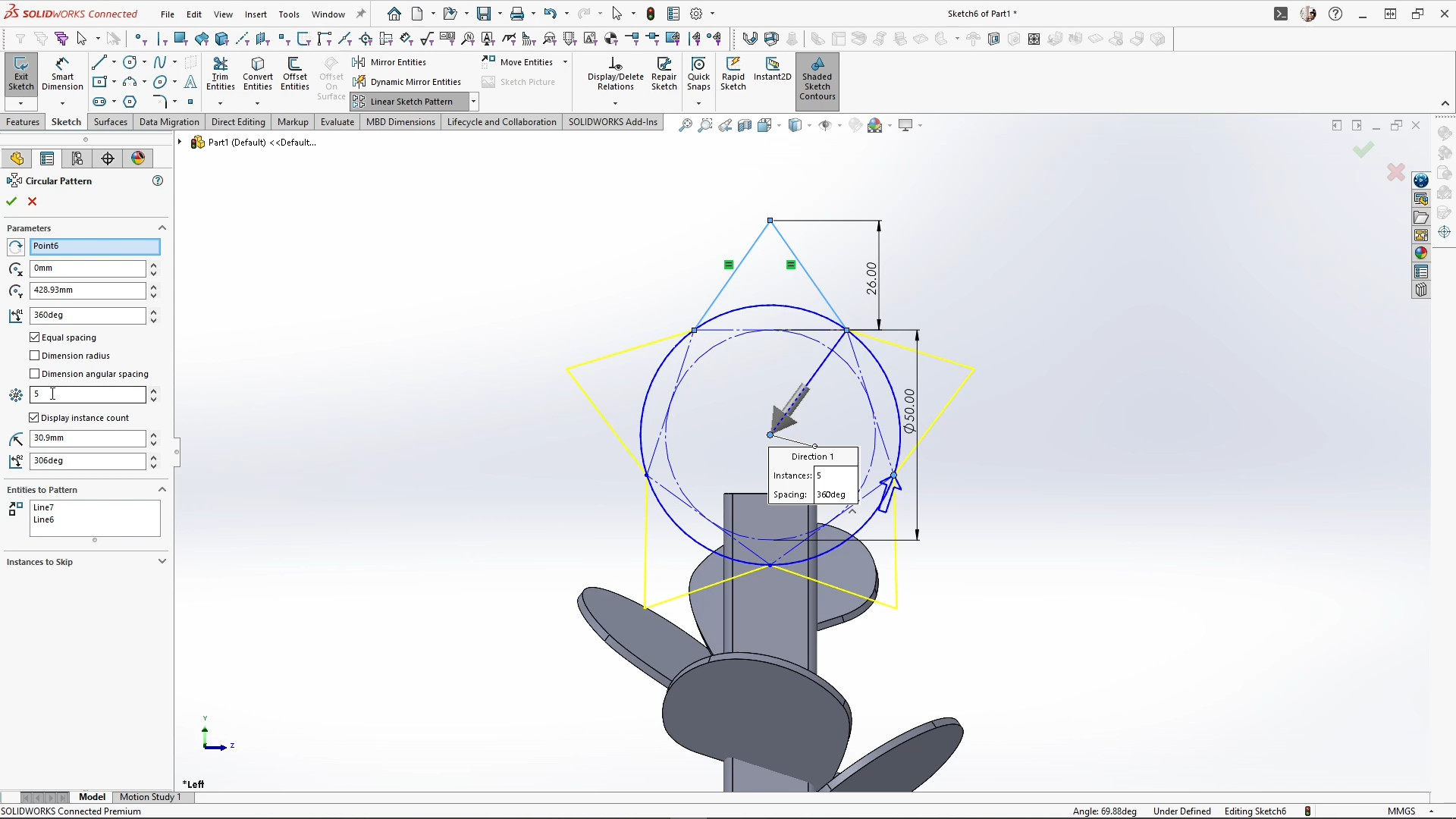 绘制星星:增添节日氛围● 草图绘制:在右侧平面上草图,使用多边形并将参数改为5,以五边形为构建基础,确保与树干居中对齐。在形状顶部画一个点,使两条线相等并将点的高度标注为26毫米。接着使用圆形草图模式从五边形中心点排列线条5次,一颗星星就诞生了。 ● 挤出与柔化:挤出星星中平面,保持结果未合并。用5毫米柔化星星边缘,圆角选择工具栏可一次性多边缘选择,非常方便。 |